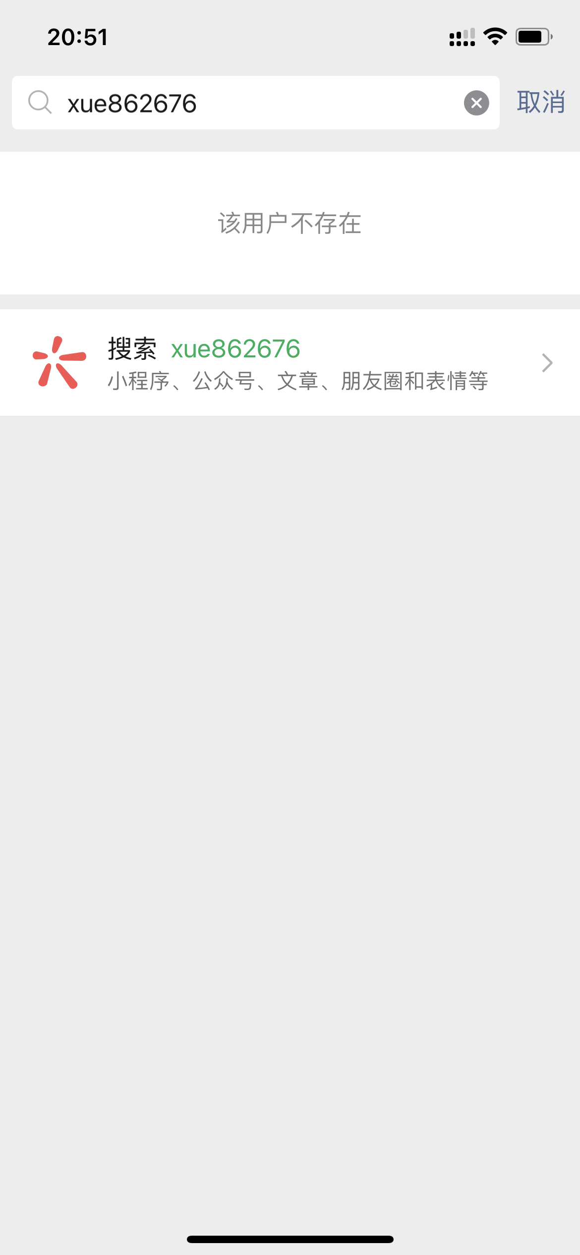 账号搜索不到 已退回